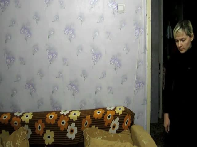 Blonde MILF sits half naked on her knees on the couch while she's shitting on a white plate.