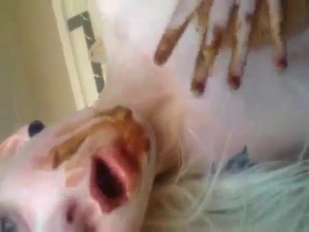 Hot babe records herself while she's smearing poop on her body. After that she starts licking all that scat from her body.