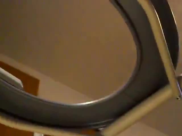 Mega fat woman sits naked on a homemade toilet while she's pooping on the bedroom floor.