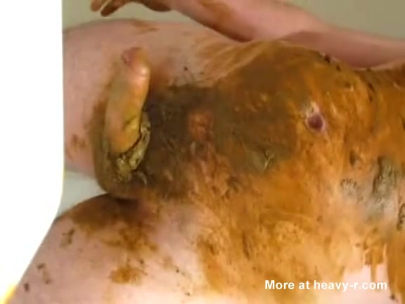 Guy going totally wild shitting on himself smearing poop over his body and fisting his butt