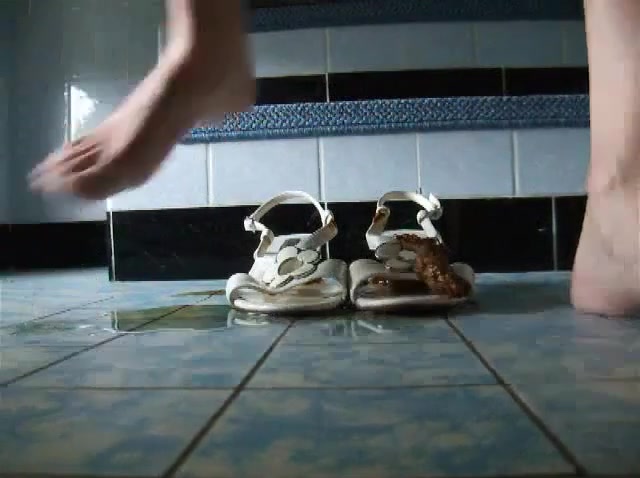 Pooping a lot on her white sandals