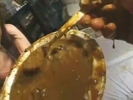 Petite babe eating a lot of poop from a plate