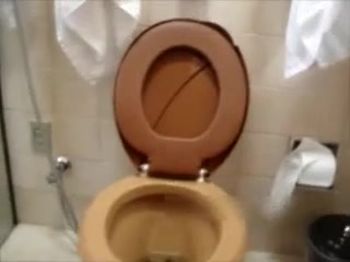 Brunette secretary is pooping over the toilet. She's teasing us with her big ass.