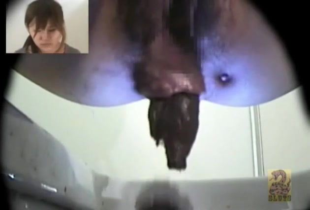 Young brunette Asian went to take a shit in a public bathroom. She didn't know that a hidden camera was installed there and we can see her.