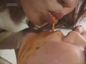 Two sexy girls are eating crap from a white bowl. They rent a hoten room just to fulfil this scat fetish.