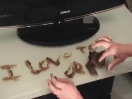 Petite blonde teen is pooping a big turd on a glass table. She writes that she loves poop on that table.