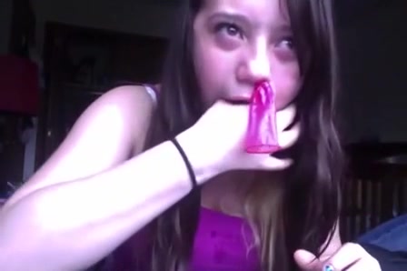 Brunette student wanted to impress her best friends on live webcam so she tried to snort a condom. She immediately puked on the floor.