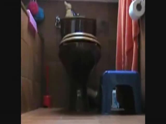 Brunette Czech girl is pooping on the bathroom floor while she's teasing us with her perky ass.