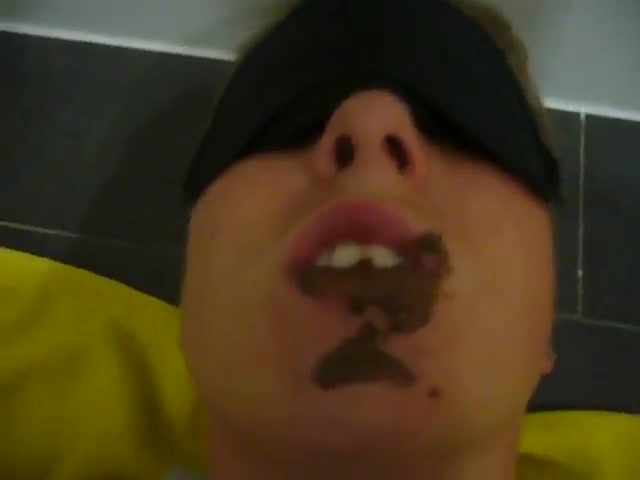 Lovely boyfriend is pooping on his girlfriends face. He dropped two pieces of shit on her entire face.