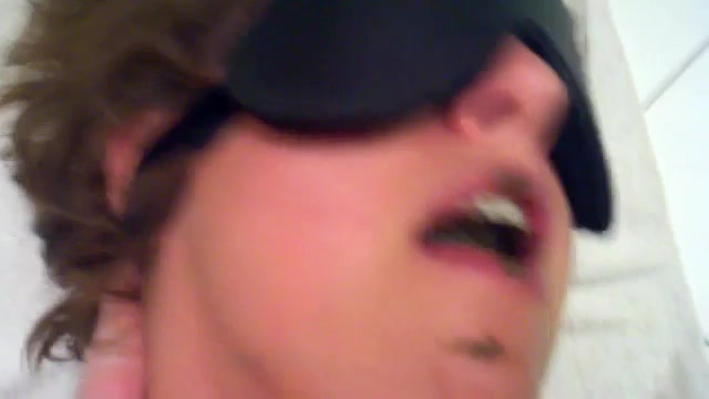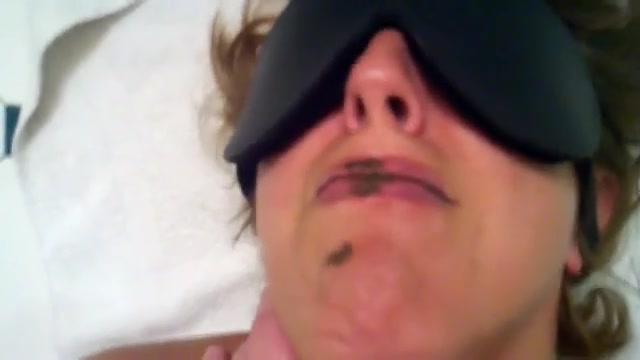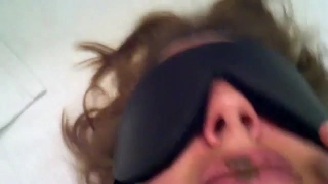 Slave wife that's blindfolded is eating a huge amount of poop from her husband. She sits half naked on the bed while trying to eat a lot of poop.