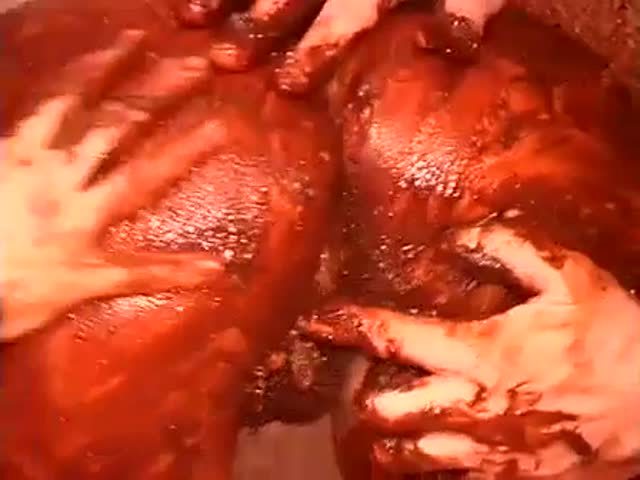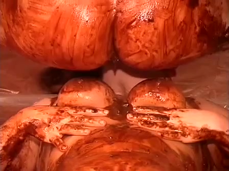 One chubby guy is having a threesome with two hot girls. All three of them are smearing poop on their naked bodies during sex.