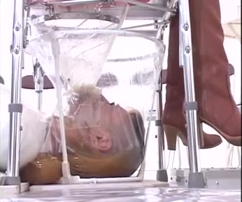 Asian male slave sits half naked on the floor while a sweet and sexy mistress is pooping in his opened mouth, forcing him to eat it.