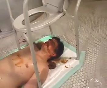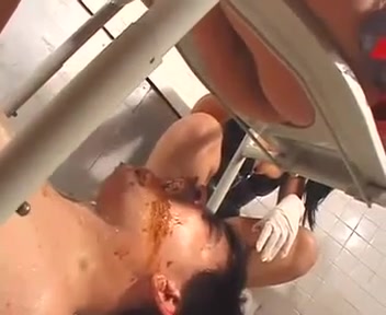 Male slave eating poop from two mistresses