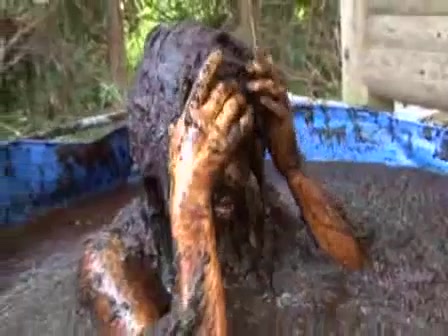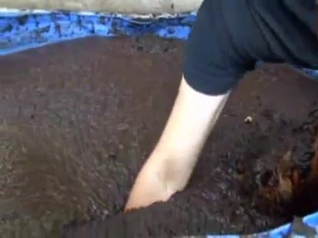 Brunette hottie sits naked in a scat bath. She's smearing fresh shit on her entire body, even on her face.