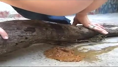 Pissing and shitting on a wooden log