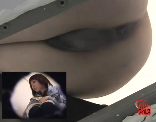 Brunette Japanese school girl is pooping in a public bathroom. We can see her through a hidden camera that was installed there.