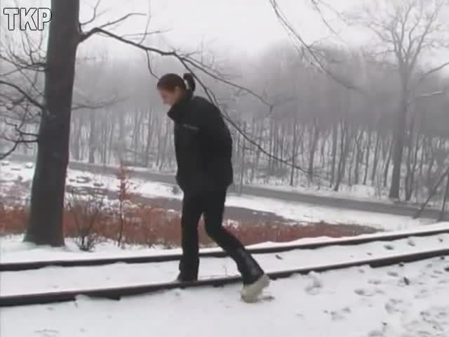 Sexy teen couldn't stop the urge to pee so she undressed slowly to pee in snow, outdoor.