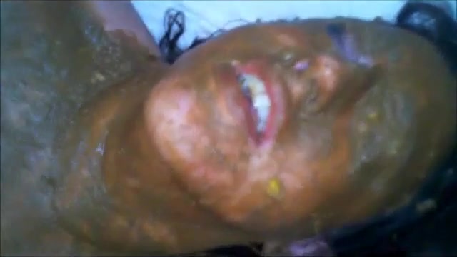 Horny brunette housewife sits naked on the bedroom floor while she's rubbing fresh shit on her entire body.