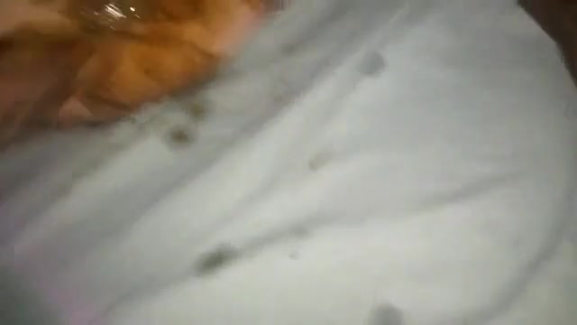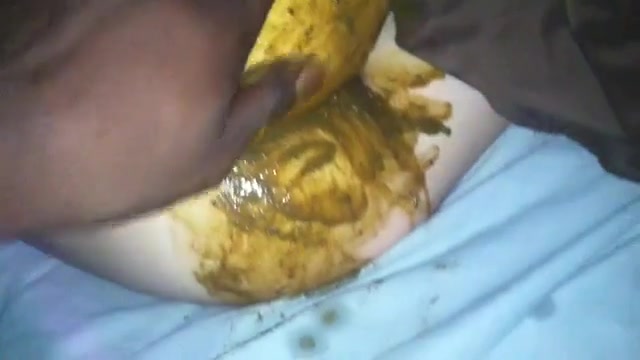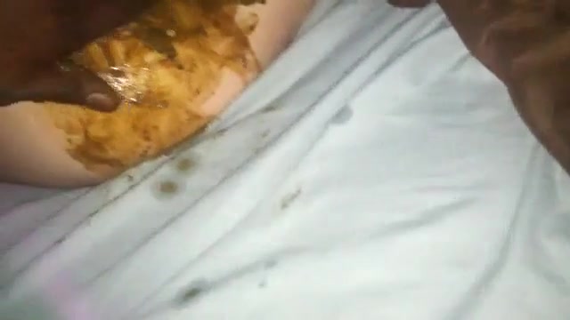 Lovely boyfriend rubbing fresh poop on his girlfriends ass while she's sleeping half naked on the bed.