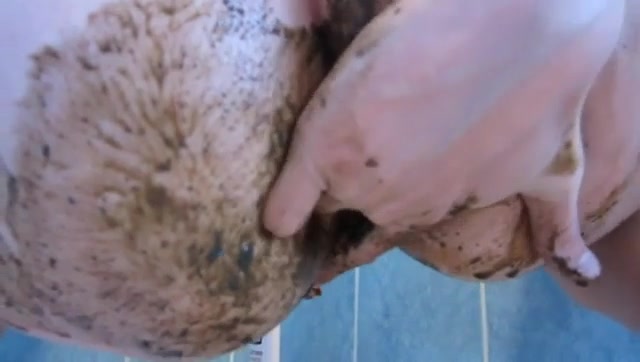 Beautiful teen smearing shit on her pussy and legs