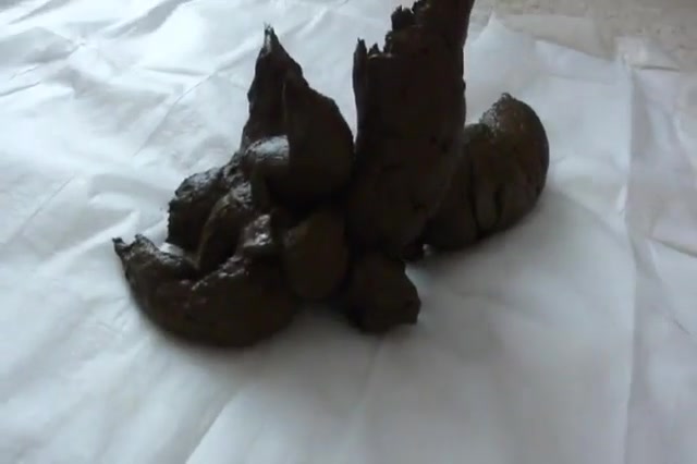 Hot babe sits naked on her knees while she's pooping. After that she inserts a white toothbrush into her ass.