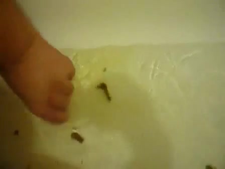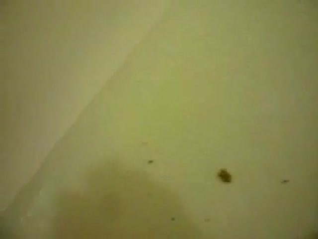 BBW babe is doing enema for the first time in her life. She'sp ooping liquid shit in the water, on her legs.