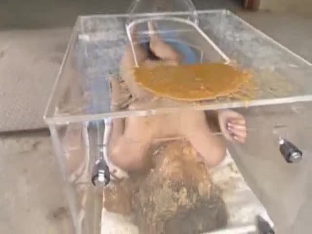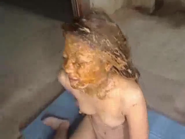 Brunette Asian teen sits naked in a big pile of fresh poop. She's smearing crap on her entire body, before reaching orgasm.