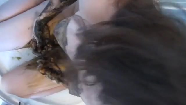 Hot babe sits naked on the bathroom floor while her boyfriend is trying to cum on her shitty cums.