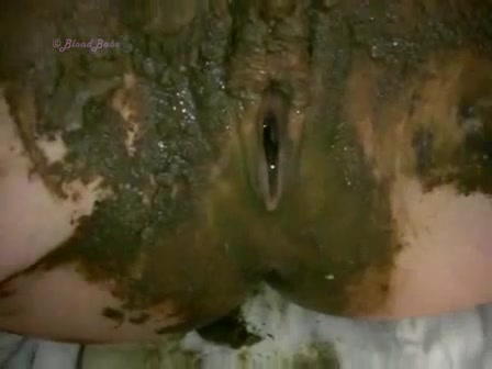 Sexy girlfriend lets her boyfriend to smear shit on her pussy while fingering her pussy hard. That made her squirt all over the floor.