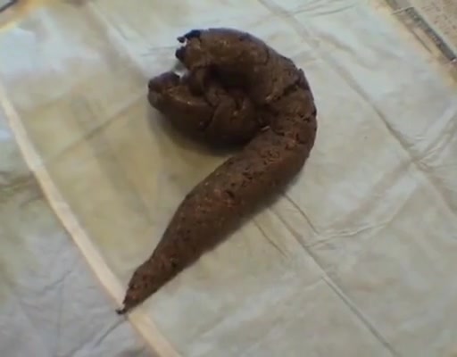 Young brunette woman is playing with her own shit. She made a scat ball so she can throw it around.