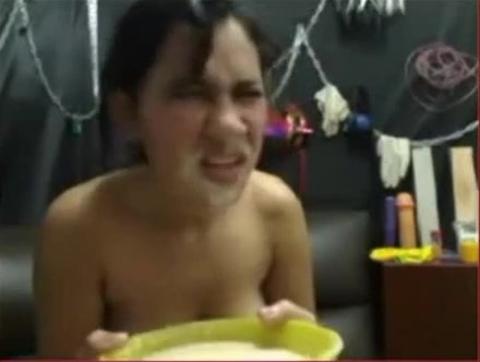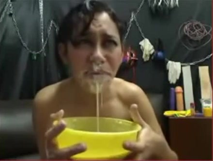 Drinking piss made her puke in a yellow bowl