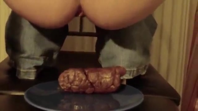 Amateur girl dropped a hard turd on a plate