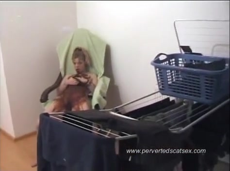 Blonde stundent smearing shit on her naked body