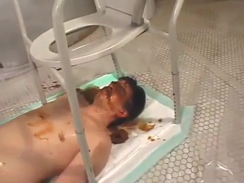 Sexy young mistress sits naked on a homemade toilet while pooping on her male slave.