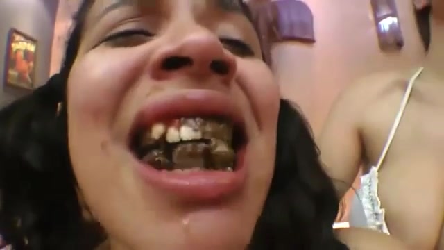 Lesbian latina forced to swallow a turd