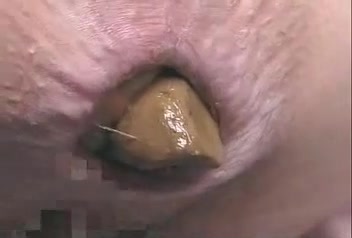 Great close up of a Chinese girl that's pooping a monster turd on the bedroom floor.