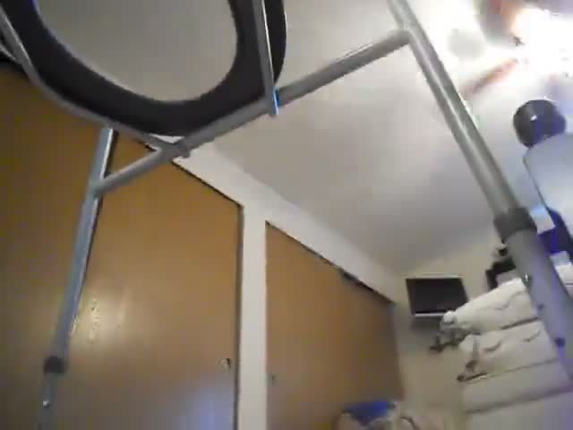 BBW sits naked on a homemade toilet as she's pooping on the bedroom floor.