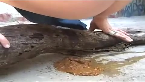 Sexy blonde virgin decides to take a shit on the ground, in public.