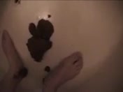 Hairy teen is smearing fresh shit on her feet while she sits naked in the shower.