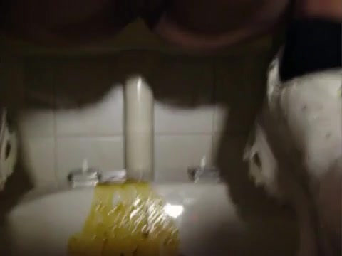 Amateur girl did a real mess in the toilet as she dropped a huge amount of diarheea.