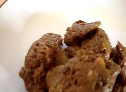 Fat girl dropped a big turd on a white plate for dinner. She's going to eat that poop later on.