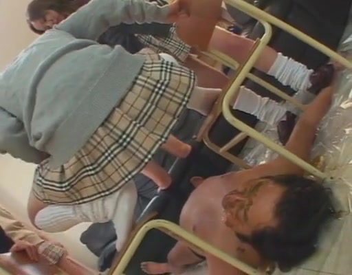 Sexy school girls pooping on a mature man
