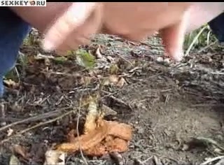 Fat redhead decides to take a shit on the ground, outdoor. She was amazed cause of the bad smell of her shit.