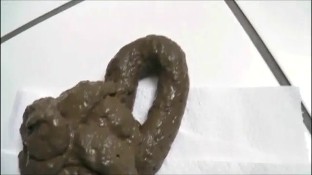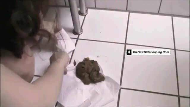 Sexy naked girl finished pooping on a white napkin. She threw that poop in the toilet with her hands.