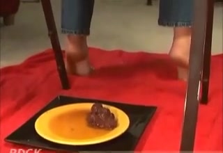 Hot brunette pulled her tight jeans off so she can easily poop a big one on the floor.