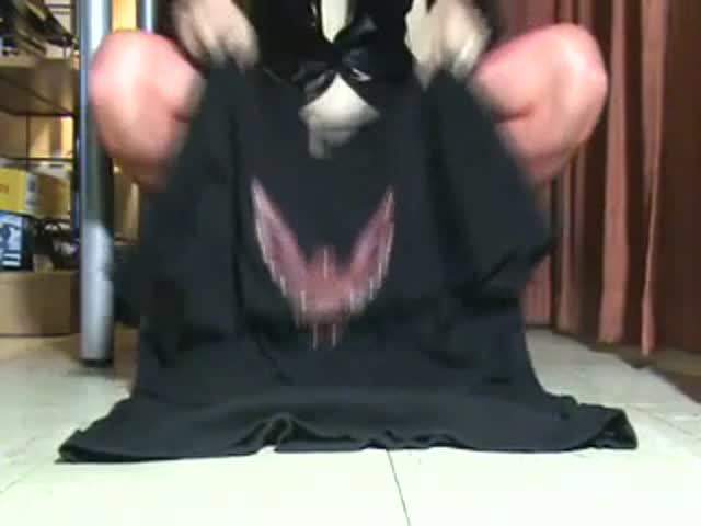Hairy girl pooping lots of shit on a black towel.