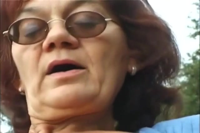 granny is rubbing her old twat while she's peeing on the ground, outdoor.