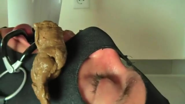 Beautiful brunette shitting on her masked boyfriend