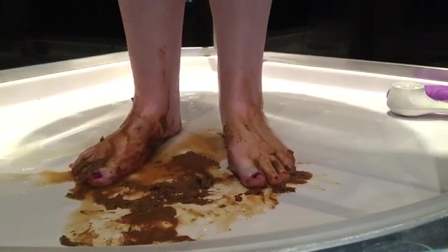 Beautiful girl smearing shit on her feet