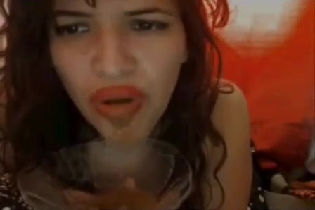 Brunette webcam slut is teasing her viewers and fans by eating a long turd. She starts gagging loud.